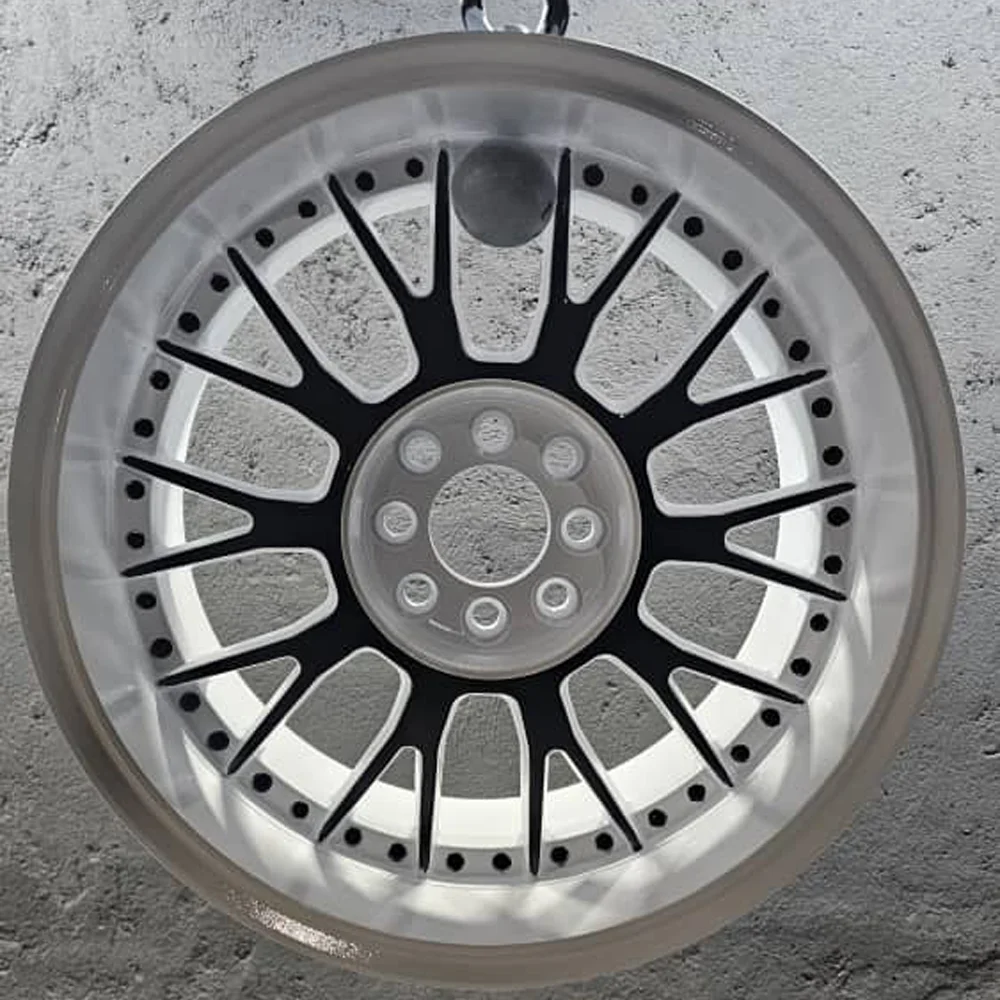 رنگ آمیزی رینگ به روش استاتیک کورهای دورنگ مشکی سفید یکی از حرفهایترین و بادوامترین روشها برای زیباسازی رینگ خودرو است. این سبک ترکیبی با استفاده از تکنولوژی رنگ پودری الکترواستاتیک و پخت در کوره صنعتی انجام میشود و نتیجه آن ظاهری بسیار شیک، اسپرت و کاملاً فابریک است.